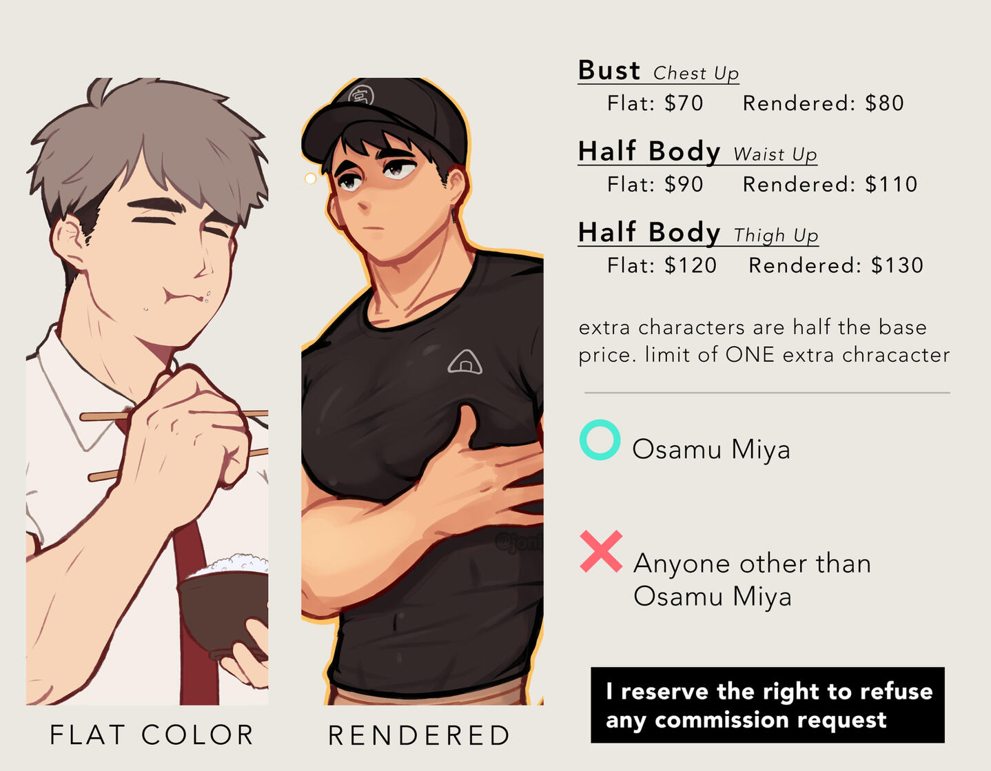 You will be notified via Twitter/Instagram DM if your request was accepted.Failure to respond within 48 hours will result in the termination of your commission request.After I have recieved payment, I will contact you again when I have a sketch ready for review before moving onto creating the final version. At that time, please do not hesitate to ask for changes/adjustments to the piece.My artworks take time and all commissions are completed in my free time on top of my real life responsibilities and other commissions. Please be prepared to wait up to 2 months for the finished piece.Taking on multiple commissions is hard work and can be very draining. For the sake of my mental health, I may draw personal artwork for myself inbetween commissions and post them on my platforms. This does not mean that I have forgotten about your commission nor is it an invitation to publicly ask about the progress on it in the comments.